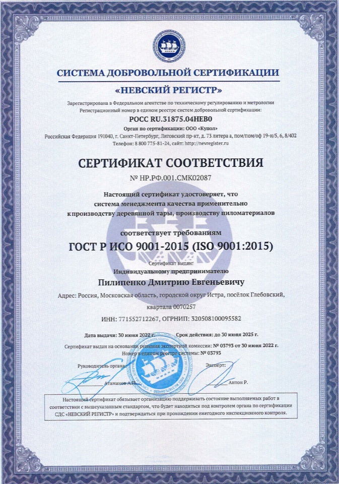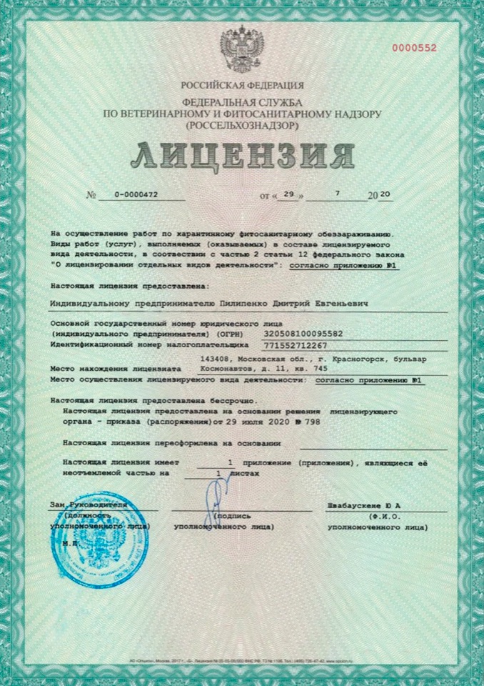 Лицензия Россельхоза РФ на обеззараживание деревянной тары для прохождения фитосанитарного контроля: 0-0000472, проверить тут